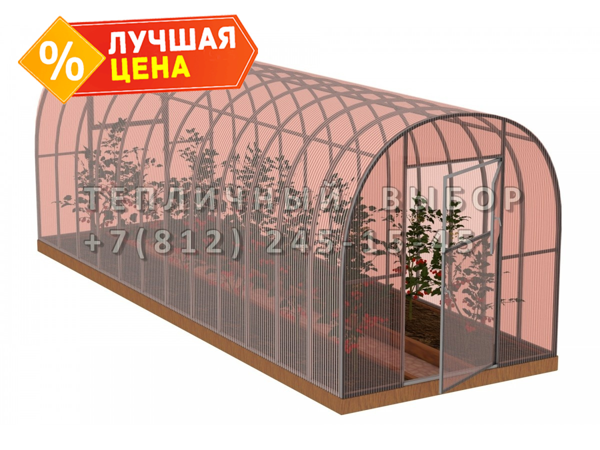 Теплица из поликарбоната-фито Усиленная Арочная 2,1х10 h=2 м профиль 25х25 мм