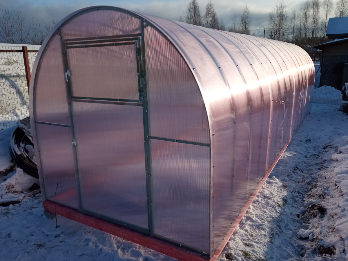 • поликарбонат толщиной 4 мм (в транспортном состоянии свёрнутые в рулон листы имеют диаметр до 80 см и длину 2,1 м)