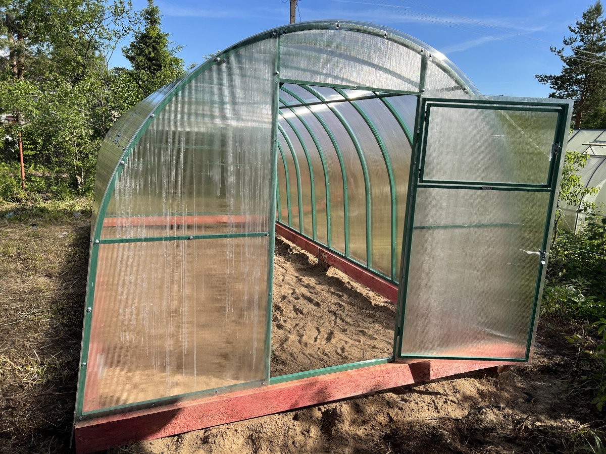 • практичная конструкция: 2 двери и 2 форточки обеспечивают легкий доступ в теплицу и ее проветривание. Размер дверей 171х89 cм, размер форточек в дверях 48х83 см