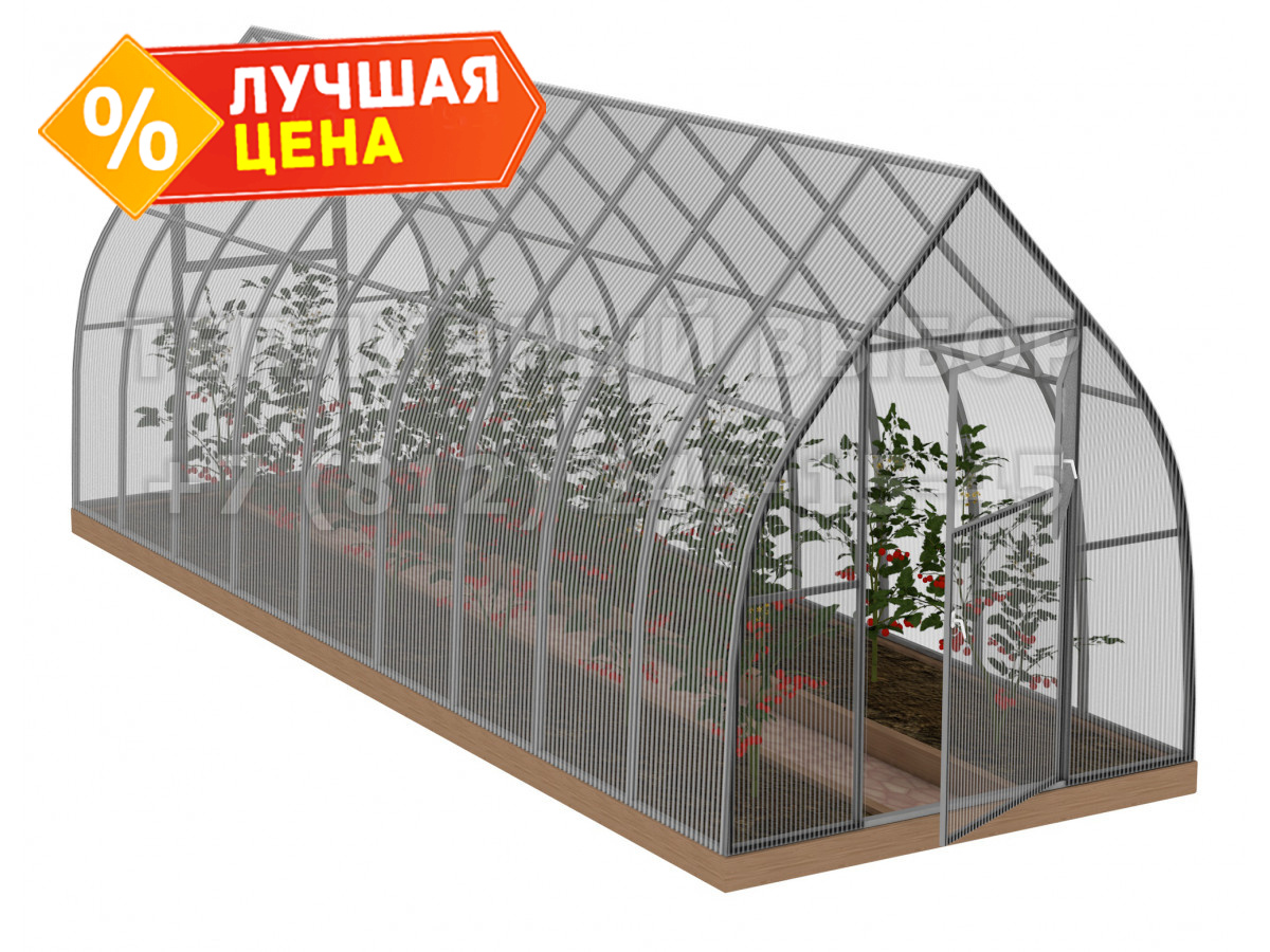 Теплица из поликарбоната Усиленная Капелька 2,1х12 h=2.3 м профиль 25х25 мм