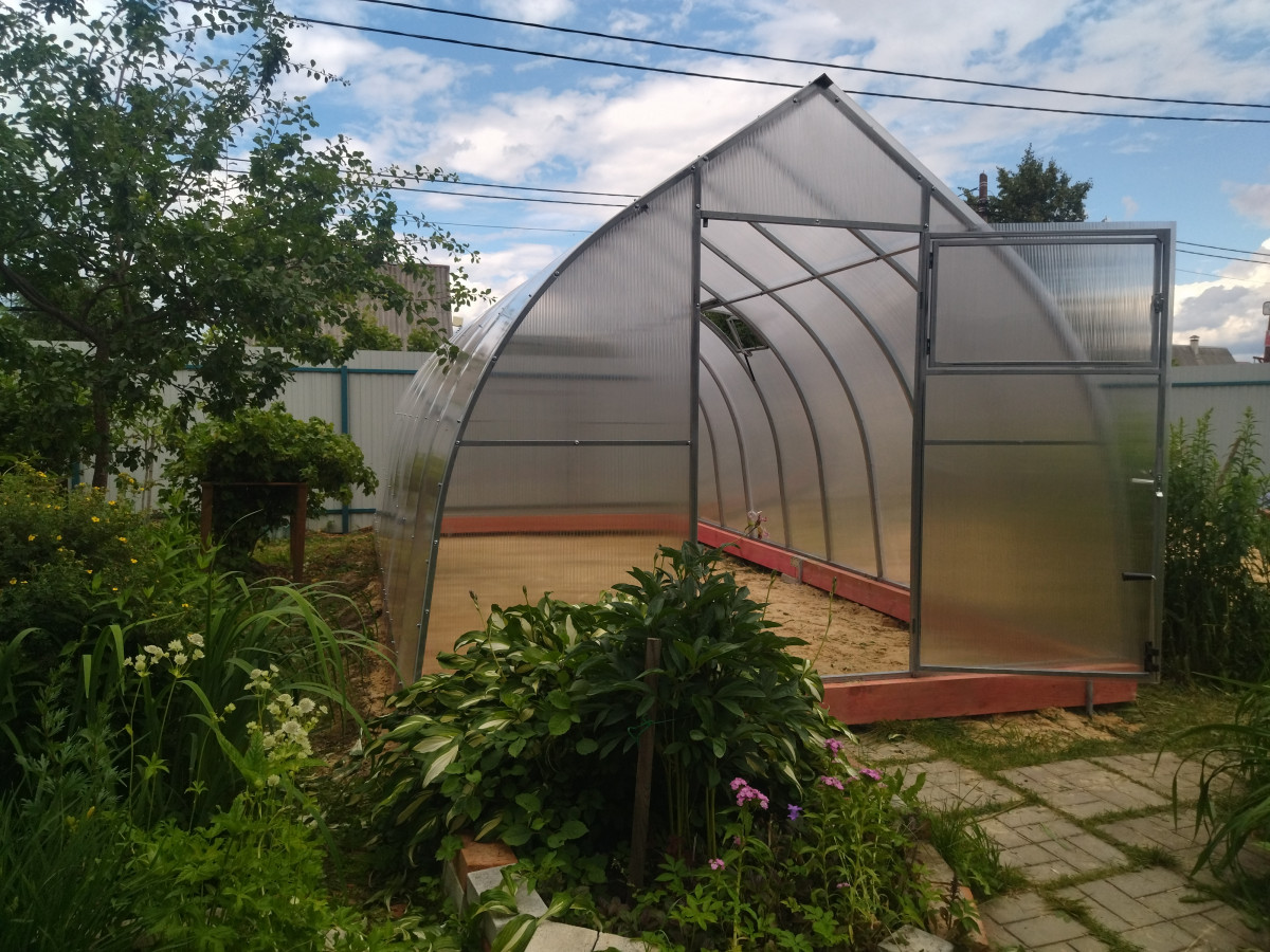 В разобранном виде теплица состоит из отдельных сварных рам в виде дуги.