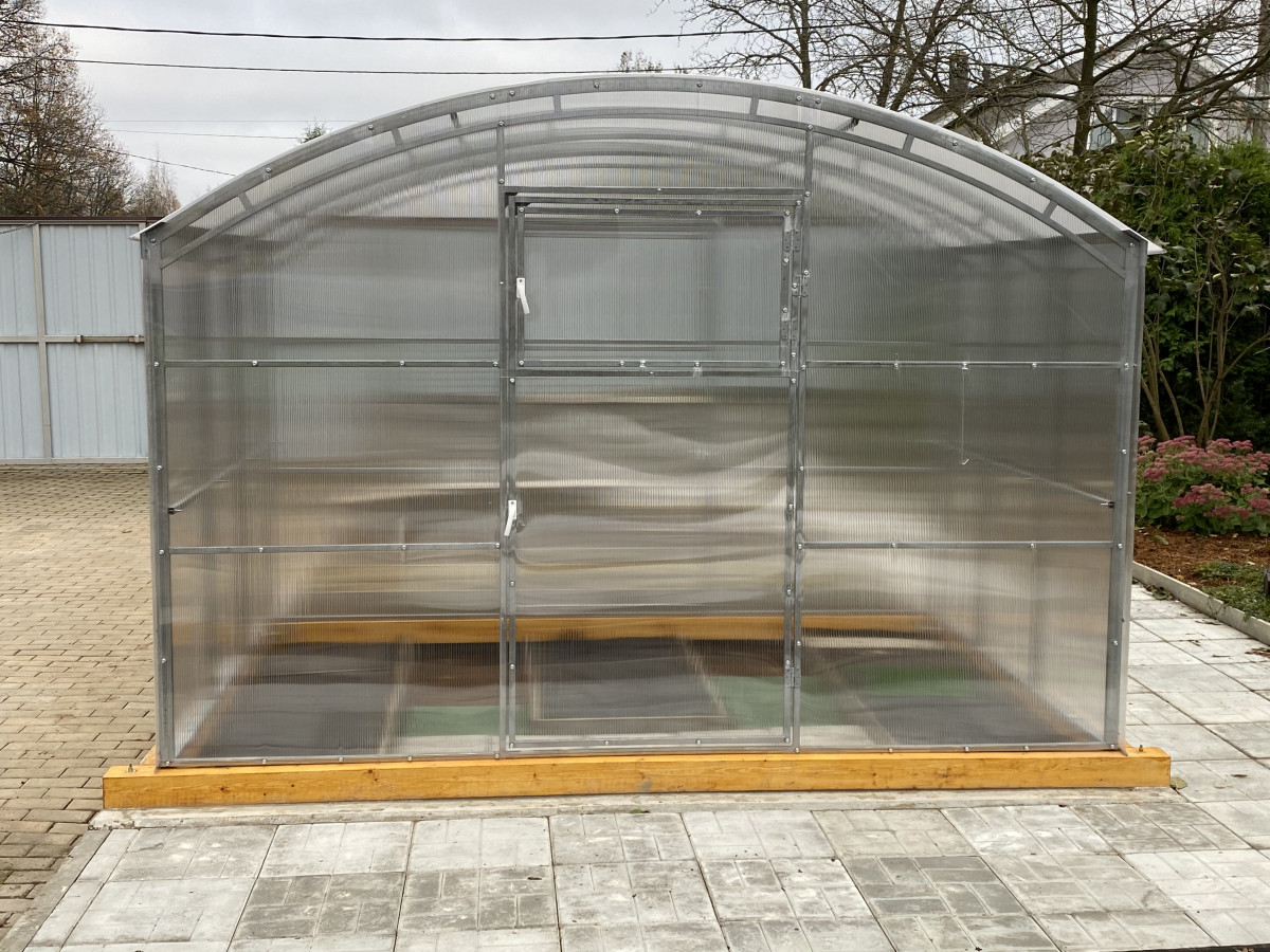 • теплица рекомендована для северных широт с большим количеством осадков, выдерживает порывистые ветра и сильные снегопады, не деформируется под слоем слежавшегося снега толщиной до 90 см;