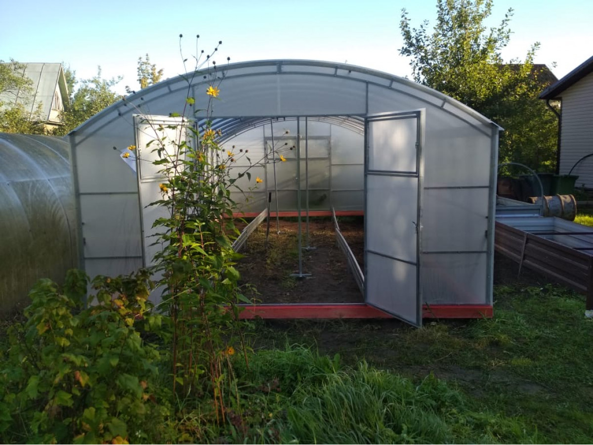 • широкая, ширина теплицы 5 метров позволяет организовать 4 широкие полноценные грядки с комфортными проходами между ними;
